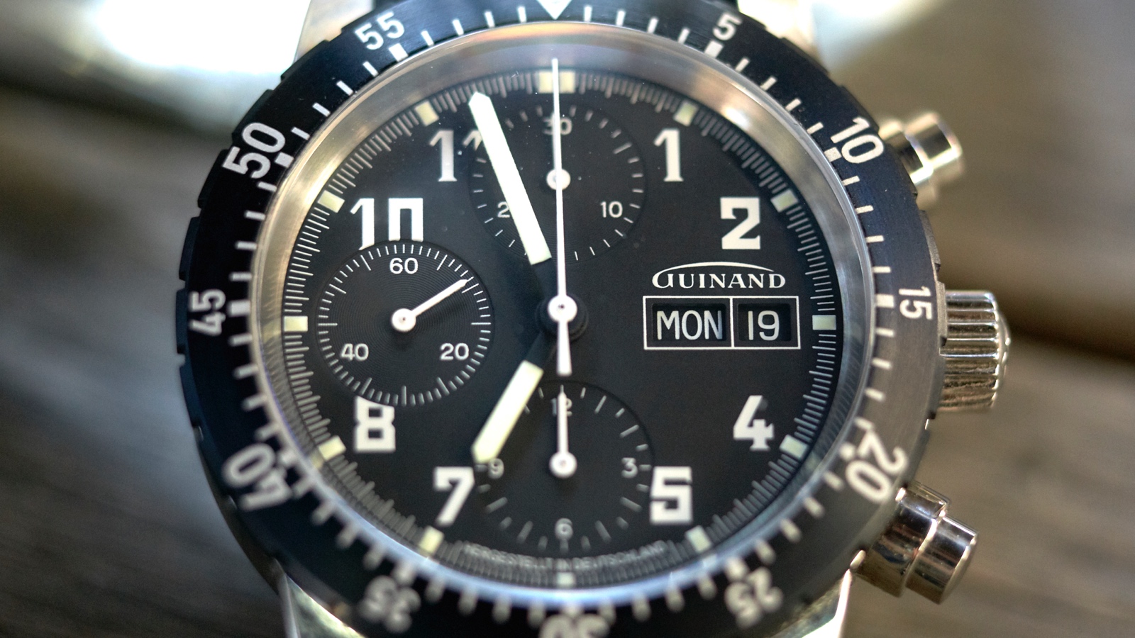 The most tempting watches that Guinand offers, are their Valjoux powered chronographs, and Guinand 40.50.01 is one of them.