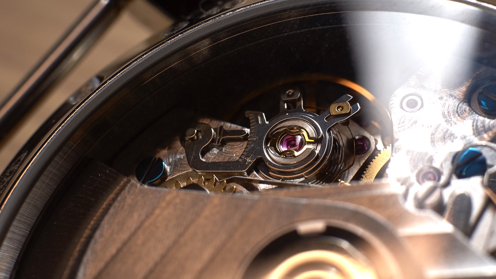 Viewing the Guinand 40.50.01 from the side, you’ll notice that the lugs sloping sharply downward, like the wings of a fighter jet, for a better fit on the wrist. The case appears a bit tall, and it is at 15.2 mm. Guinand gets its height from its bulging case back, which is topped off with a domed sapphire crystal. Though it’s cool in appearance, it forces the watch to sit a bit higher off the wrist rather than sink into it. The sapphire crystal edge on top is a fraction of mm raised above the edge of the bezel.