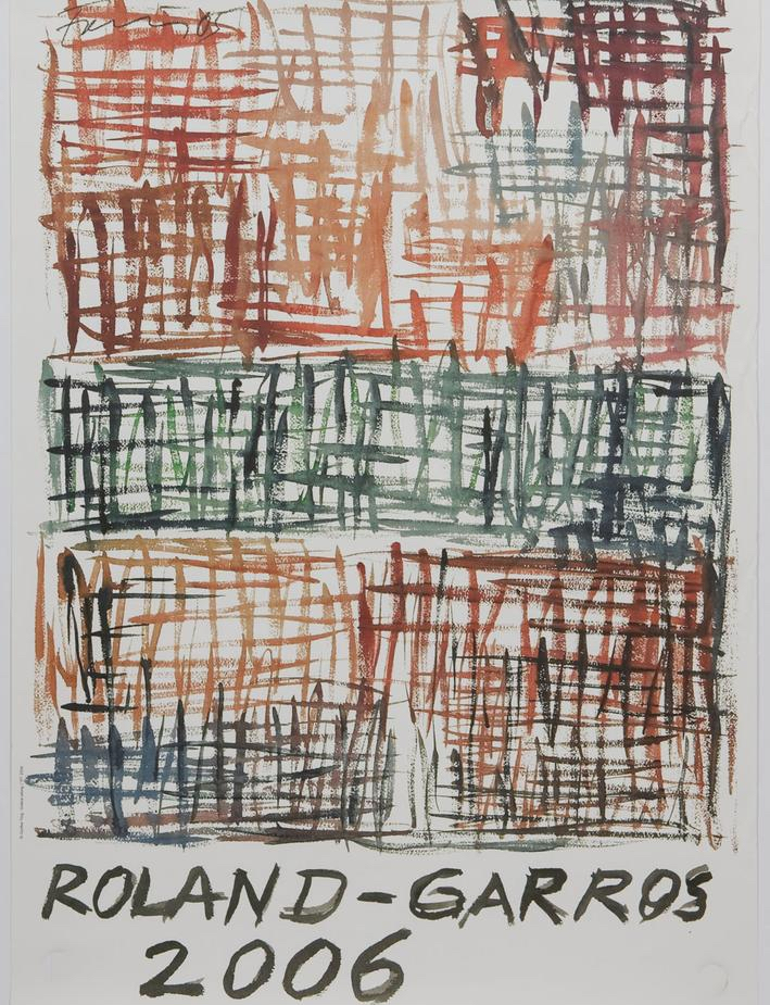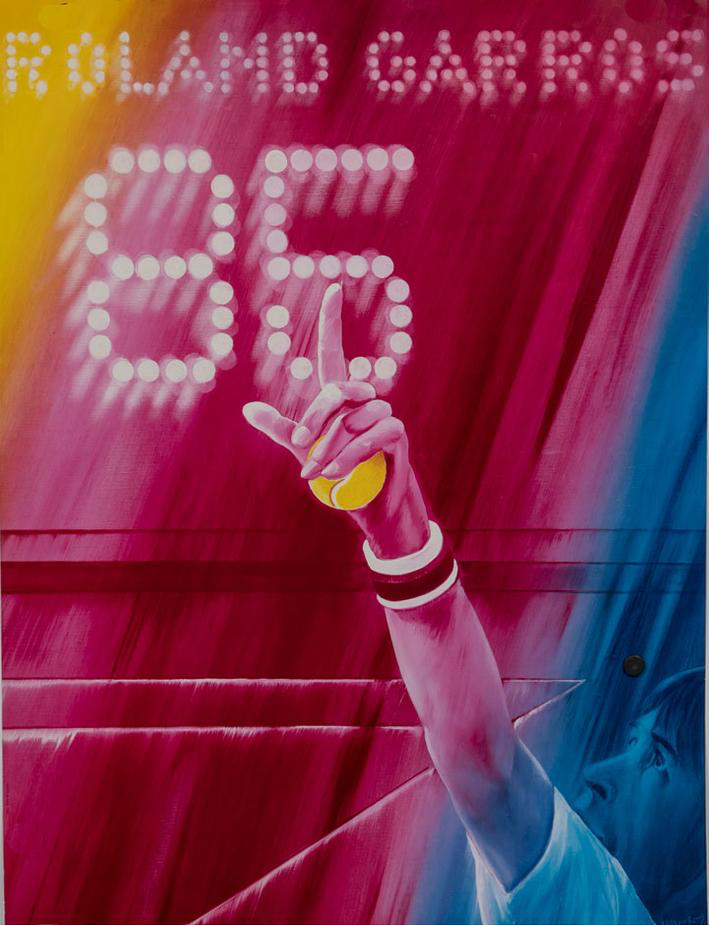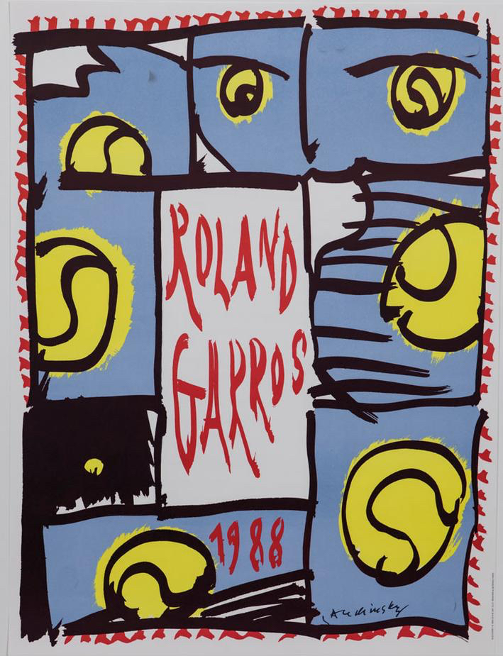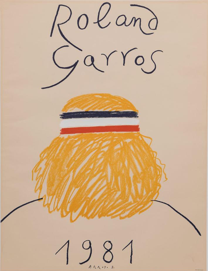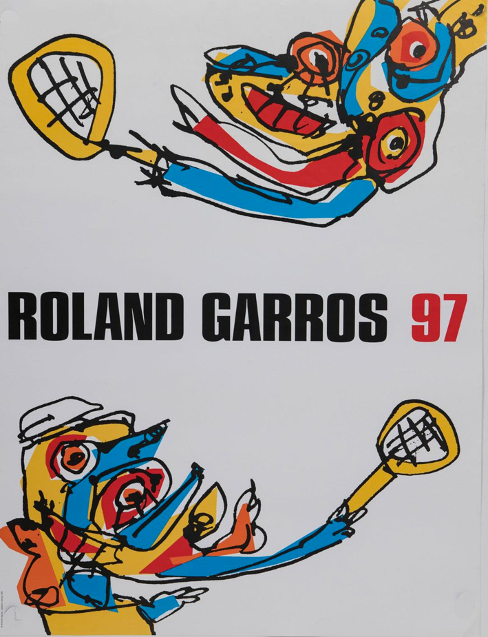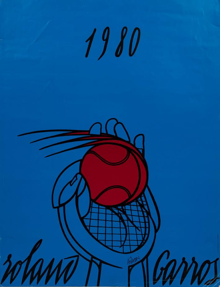 Back in 1980, the French Tennis Federation and the French Open Tournament Committee partnered with Galerie Lelong & Co. to begin a series of annual poster designs. For every edition of the tournament, an artist submits a specially-created piece that reflects the history, colors, and characteristic shapes of this major event.