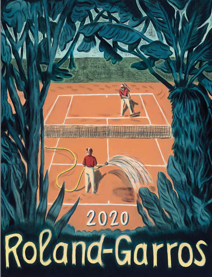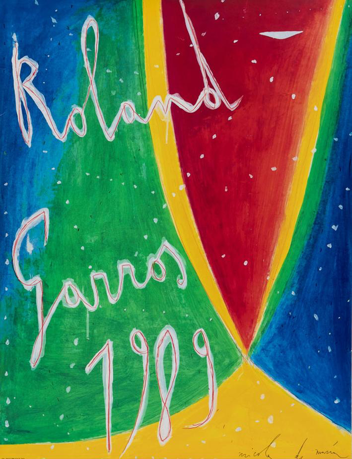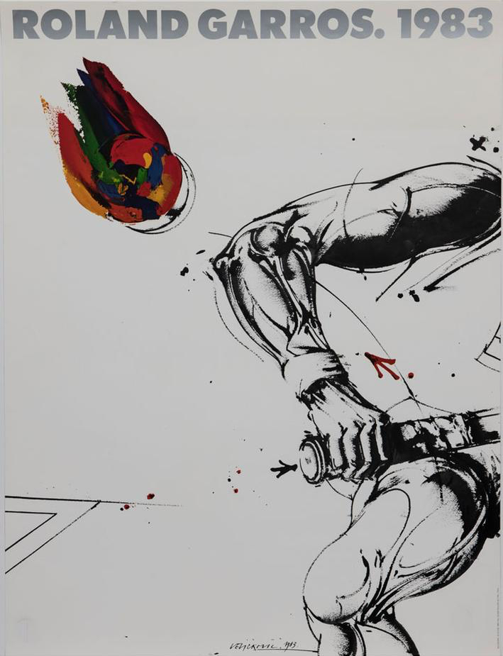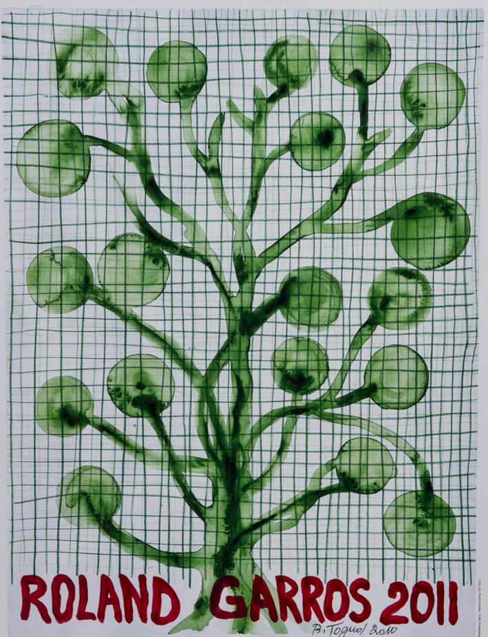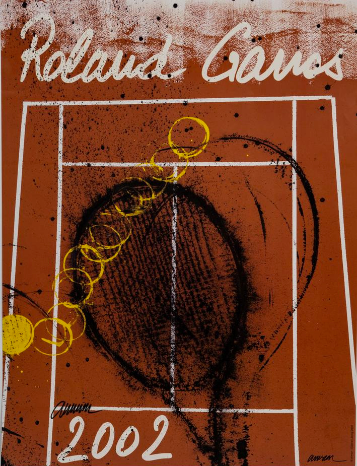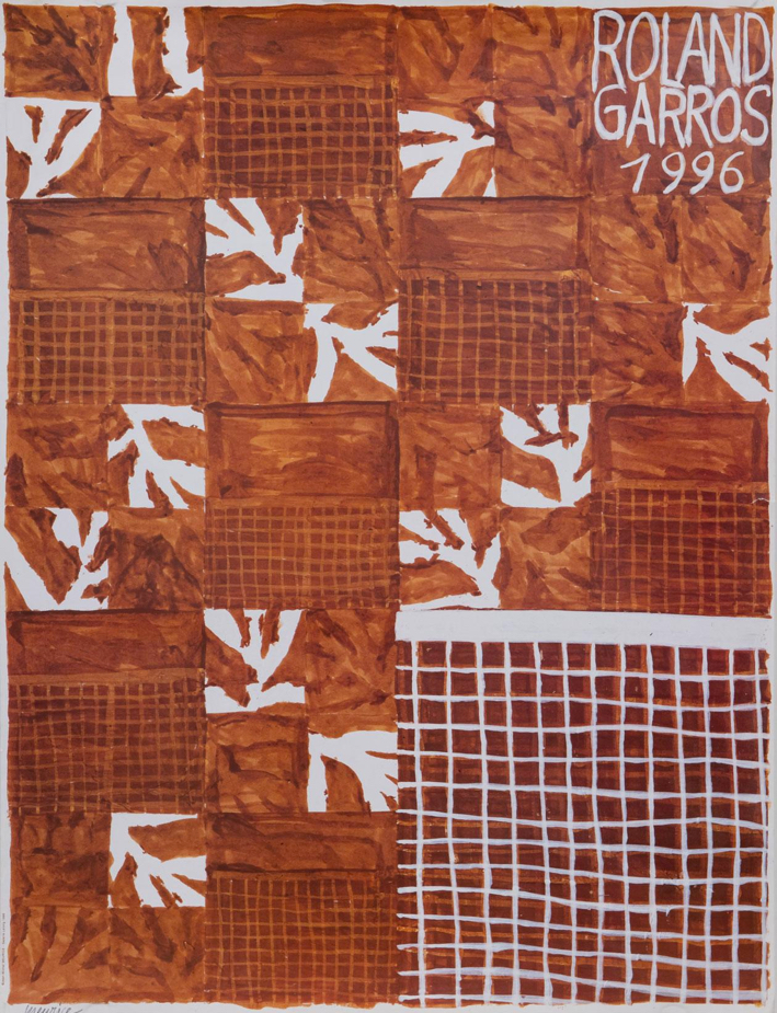 Back in 1980, the French Tennis Federation and the French Open Tournament Committee partnered with Galerie Lelong & Co. to begin a series of annual poster designs. For every edition of the tournament, an artist submits a specially-created piece that reflects the history, colors, and characteristic shapes of this major event.